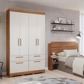O Guarda Roupa Solteiro com Pés 4 Portas 4 Gavetas 100MDF Porto Panan, ideal para quem busca funcionalidade e qualidade. Com design moderno, possui 3 prateleiras internas, 2 gavetas convencionais e 2 gavetões equipados com corrediças telescópicas para um deslize suave e seguro. Conta também com um espelho interno, cabideiro em alumínio, e puxadores em MDF que agregam durabilidade e estilo. Além disso, seus pés proporcionam maior estabilidade e facilitam a limpeza do ambiente.