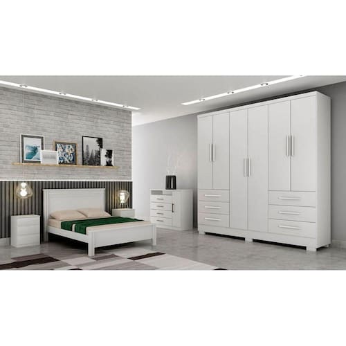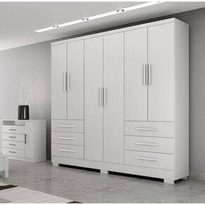 O Guarda Roupa Encant vai proporcionar um ambiente aconchegante mantendo um visual sofisticado e funcional. Composto por peças de extrema qualidade e com excelente espaço interno bem distribuídos, oferecendo máxima organização de forma prática. Fabricado em 100% MDP, 6 portas de bater. Possui 6 gavetas com corrediças telescópicas, cabideiros em alumínio. Amplo espaço interno. Aproveite!