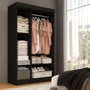 O(a) Guarda-Roupa Solteiro Cordoba 2 Portas de Correr Preto - Loja é produzido em MDP na escala de brilho Fosco, e possui um grau de dificuldade de montagem: Médio.