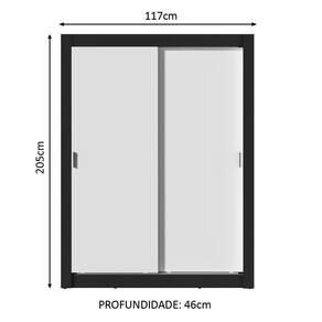 Medidas totais do guarda-roupa: 205 cm de altura x 117 cm de largura x 46 cm de profundidade.