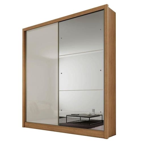 Guarda Roupa Solteiro Dante 2 Portas Cumaru 25 Fendi com Nicho e Espelho ? Horizonte
