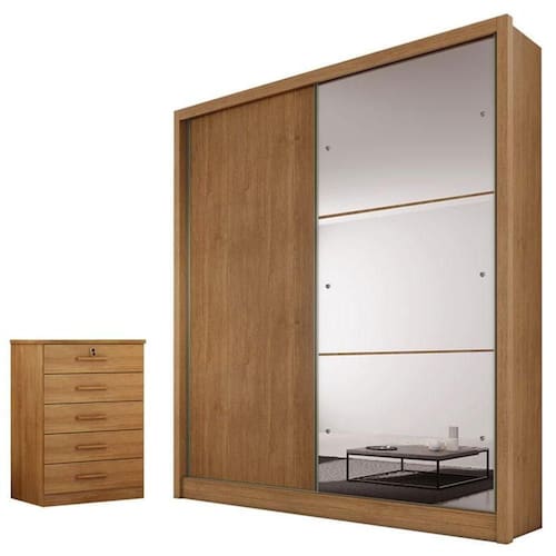 Guarda Roupa Solteiro Dante com Espelho e Gaveteiro Suiça Cumaru 23 - Horizonte