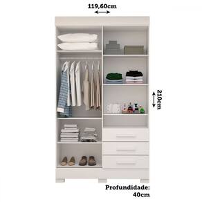 - Acompanha: 1 Guarda-Roupa, Kit Ferragens e Manual de Montagem