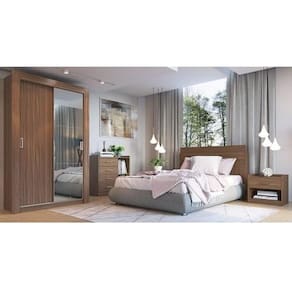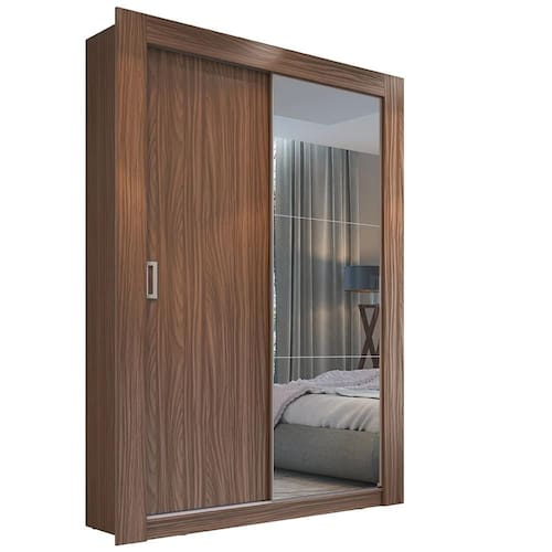 Guarda-Roupa Solteiro com Espelho 2 Portas de Correr Édez Aura, Nogueira, 119 cm
