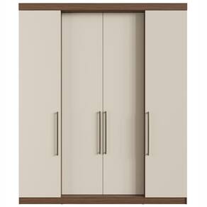Guarda-Roupa Solteiro 4 Portas Édez Soft, Off White e Nogueira, 180 cm