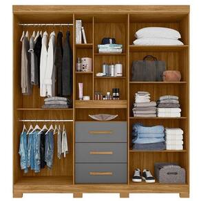 Guarda Roupa Solteiro Eldorado 5 Portas Freijó Cinza com Espelho - Moval