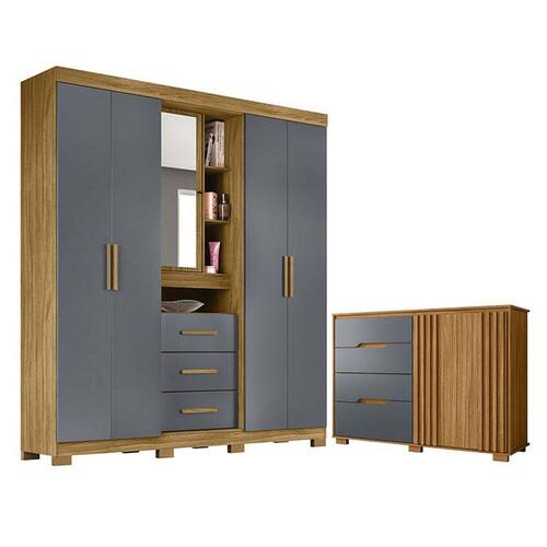 Guarda Roupa Solteiro Eldorado e Cômoda Texas Freijó Cinza - Moval