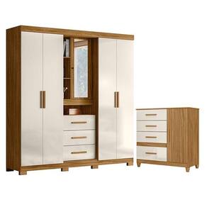 Guarda Roupa Solteiro Eldorado e Cômoda Vênus com Pés Freijó Off White Moval