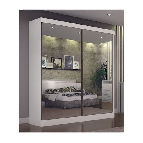 Guarda Roupa Solteiro Espelhado 2 Portas 3 Gavetas -Branco Leifer Móveis