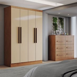 O(a) Guarda-Roupa Solteiro Europa 4 Portas 2 Gavetas com Cômoda 6 Gavetas Nude/Nogueira - Loja é produzido em MDF na escala de brilho Semi-Brilho, e possui um grau de dificuldade de montagem: Médio.