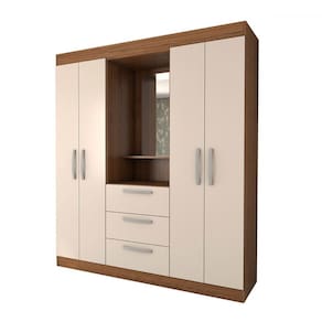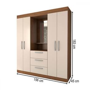 O(a) Guarda-Roupa Solteiro Europa 4 Portas 3 Gavetas Cinamomo/Off White - Loja é produzido em MDP na escala de brilho Brilho, e possui um grau de dificuldade de montagem: Médio.