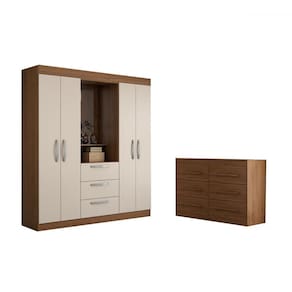 O(a) Guarda-Roupa Solteiro Europa 4 Portas 3 Gavetas e Cômoda 6 Gavetas Cinamomo/Off White - Panorama Moveis é produzido em MDF e MDP na escala de brilho Brilho, e possui um grau de dificuldade de montagem: Médio.