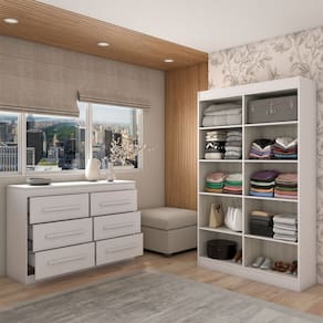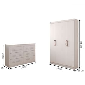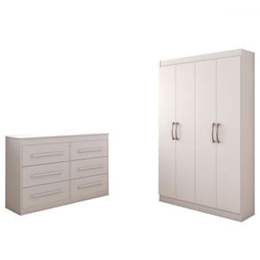 O(a) Guarda-Roupa Solteiro Europa 4 Portas e Cômoda 6 Gavetas Branco - Loja é produzido em MDF e MDP na escala de brilho Semi-Brilho, e possui um grau de dificuldade de montagem: Médio.