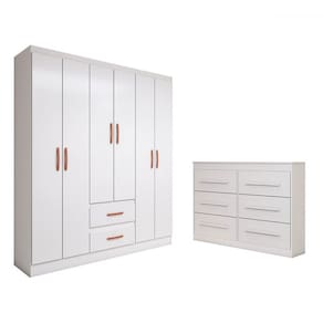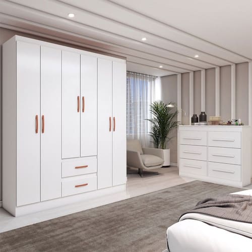 O(a) Guarda-Roupa Solteiro Europa 6 Portas 2 Gavetas com Cômoda 6 Gavetas Branco - Loja é produzido em MDF e MDP na escala de brilho Semi-Brilho, e possui um grau de dificuldade de montagem: Médio.