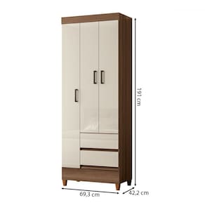 O(a) Guarda-Roupa Solteiro Fit 3 Portas 2 Gavetas Jequitiba/Off White - Santos Andirá é produzido em MDP e HDF na escala de brilho Brilhante, e possui um grau de dificuldade de montagem: Médio.