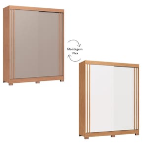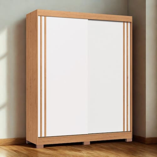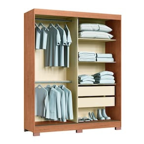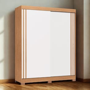 Caracteristicas: 2 Gavetas com corredicas telescopicas 2 Portas de Correr com detalhe ripado 3 Prateleiras internas Diferencial, Flex portas reversiveis Espaco para calcados Estrutura de MDP 12e 15mm e fundos MDF 3mm Possui cabideiros e pes