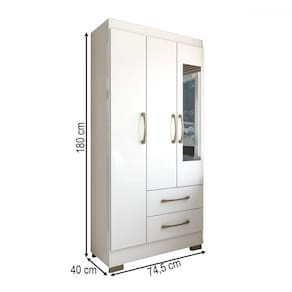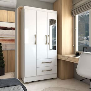 O(a) Guarda-Roupa Solteiro Florença 3 Portas 2 Gavetas com Espelho Branco - Loja é produzido em MDP na escala de brilho Alto Brilho, e possui um grau de dificuldade de montagem: Médio.