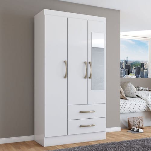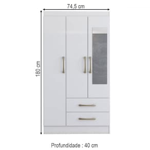 O(a) Guarda-Roupa Solteiro Florença 3 Portas 2 Gavetas com Espelho Branco - Pnr Móveis é produzido em MDP na escala de brilho Fosco, e possui um grau de dificuldade de montagem: Médio.