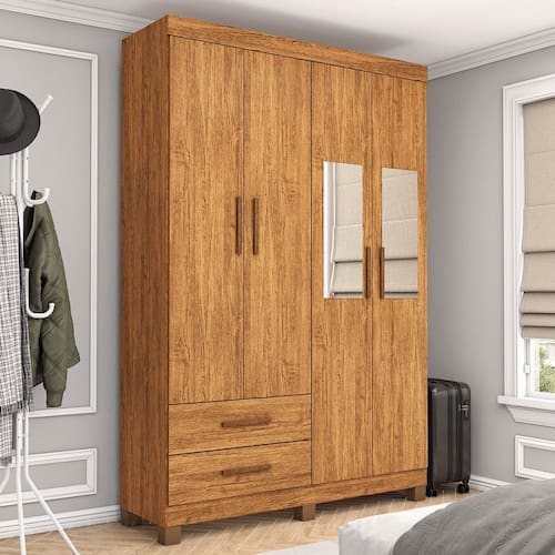 O(a) Guarda-Roupa Solteiro Genova 4 Portas 2 Gavetas com Espelho 22113 Cinamomo - Carioca Móveies é produzido em MDP na escala de brilho Fosco e Semi-Brilho, e possui um grau de dificuldade de montagem: Médio.