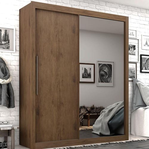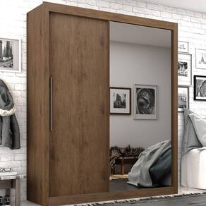ROUPEIRO ROYALE 2P COM PORTA DE ESPELHO O Roupeiro Royale se destaca pela praticidade das duas portas de correr, que contribuem para a otimização de espaço, contando com um amplo espaço interno, onde sua estrutura é formada por três gavetas, 4 prateleiras e espaço para vestidos e calças. O roupeiro Royale conta também com porta lateral de espelho trazendo mais sofisticação ao produto. O roupeiro Royale agrada pelo seu design compacto e arrojado e portas reversíveis o que possibilita até mais opções de montagem. Características3 gavetas com corrediças telescópicas;Amplo espaço interno;Interno na cor nature;Kit pés opcionais;Porta de espelho;Portas reversíveis;Prateleiras organizadoras;Profundidade de 53cm;Puxador lateral em alumínio;Puxadores exclusivos em MDF;Estrutura em MDPProduto não acompanha os pés Dimensões:Altura: 226 cmLargura: 149 cmProfundidade: 53,8 cm-A tonalidade cor da peça ou tecido do produto pode variar, não acompanha acessórios de decoração, fotos e imagens ilustrativas.-Móveis entregues desmontados, em local de fácil acesso no térreo. Na caixa. A responsabilidade pela montagem e instalação do produto é exclusivamente do comprador.-Recomendações para uma boa conservação: evitar a exposição direta à luz solar e à umidade para limpeza, limpar com pano macio e seco, não utilizar qualquer outro tipo de produto.