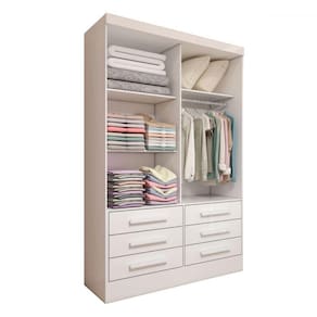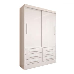 O(a) Guarda-Roupa Solteiro Guaianases 2 Portas 6 Gavetas Branco - Loja é produzido em MDP na escala de brilho Brilho, e possui um grau de dificuldade de montagem: Médio.