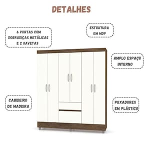 Transforme seu quarto com o Guarda Roupa Ideal Plus, a solução perfeita para organização. Com seis portas espaçosas e um design sofisticado, ele oferece amplo espaço para suas roupas e acessórios, mantendo tudo em ordem. A qualidade dos materiais e o acabamento impecável garantem durabilidade e um toque moderno ao seu ambiente. Não perca a chance de elevar o conforto e a funcionalidade do seu espaço com este móvel essencial!