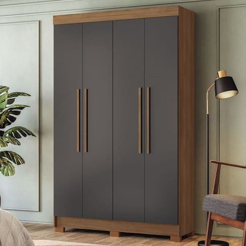O(a) Guarda-Roupa Solteiro Iporá 4 Portas 2 Gavetas Jatoba/Grafite - Pnr Móveis é produzido em MDF, MDP e HDF na escala de brilho Semi-Fosco, e possui um grau de dificuldade de montagem: Médio.