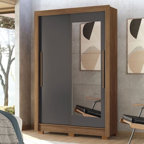 O(a) Guarda-Roupa Solteiro Jardins 2 Portas 2 Gavetas Jatoba/Grafite com Espelho - Pnr Móveis é produzido em MDF, MDP e HDF na escala de brilho Semi-Fosco, e possui um grau de dificuldade de montagem: Médio.
