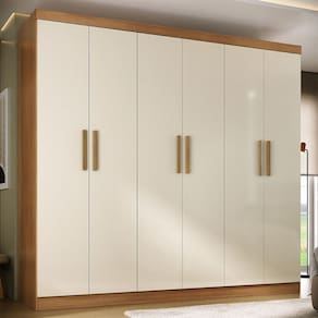 O(a) Guarda-Roupa Solteiro Lancaster 6 Portas 3 Gavetas 100% Mdf Cinamomo/Off White - Loja é produzido em 100% MDF na escala de brilho Fosco, e possui um grau de dificuldade de montagem: Médio.
