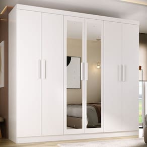 O(a) Guarda-Roupa Solteiro Lancaster 6 Portas 3 Gavetas 100% Mdf com Espelho Branco - Loja é produzido em 100% MDF na escala de brilho Fosco, e possui um grau de dificuldade de montagem: Médio.