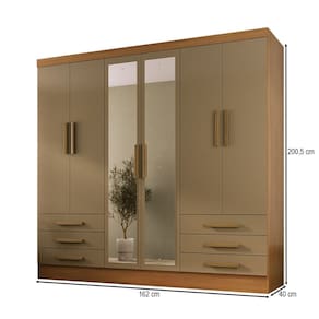O(a) Guarda-Roupa Solteiro Lancaster 6 Portas 6 Gavetas 100% Mdf com Espelho Cinamomo/Cappuccino - Loja é produzido em 100% MDF na escala de brilho Semi-Brilho, e possui um grau de dificuldade de montagem: Médio.
