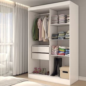 - Acompanha: 1 Guarda-Roupa, Kit Ferragens e Manual de Montagem