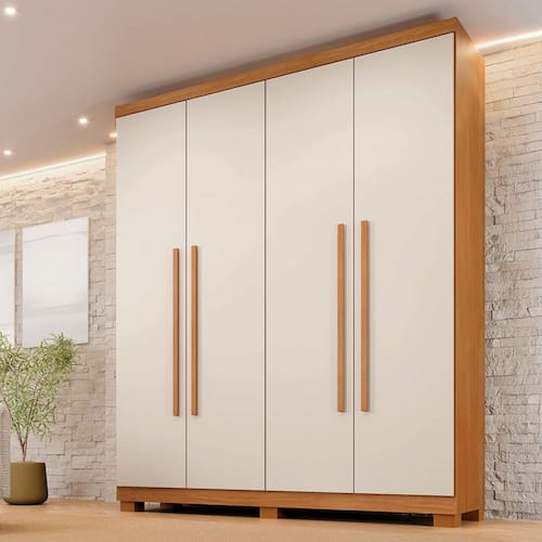 O(a) Guarda-Roupa Solteiro Lille 4 Portas 3 Gavetas Cinamomo/Off White - Pnr Móveis é produzido em MDP na escala de brilho Fosco, e possui um grau de dificuldade de montagem: Médio.