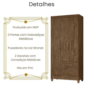 Guarda Roupa Solteiro Lima 3 Portas Moval