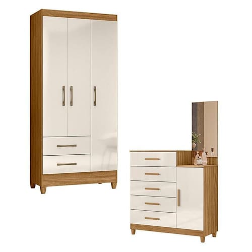 Organize seu quarto com elegância e o melhor custo benefício do mercado. Apresentamos o Guarda Roupa Solteiro Lima e Cômoda Lisboa fabricados pela Moval. Guarda Roupa com 03 portas e 02 gavetas com corrediças metálicas, puxadores na cor bronze, cabideiro para melhor organização interna, espaço ideal para roupas longas e pés em PVC. A cômoda possui 05 gavetas com corrediças metálicas, 01 porta, painel com espelho, puxadores em MDF e um design moderno que combina com qualquer decoração. Fabricado com materiais de alta qualidade que garante resistência e durabilidade ao produto. Confira mais detalhes e aproveite!