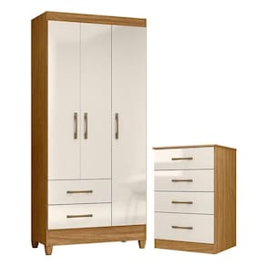 Guarda Roupa Solteiro Lima e Cômoda MS913 Freijó Off White Moval