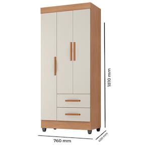 Guarda Roupa Solteiro Lite 3 Portas E 2 Gavetas Nature/off White - Móveis Leão Nature/off White