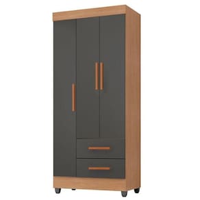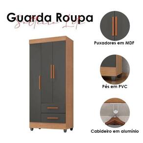 Guarda Roupa Solteiro Lite 3 Portas Nature Cinza Móveis Leão