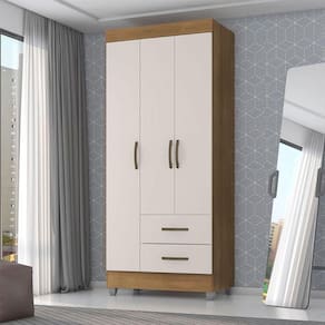 Guarda Roupa Solteiro Lite 3 Portas Nature Off White - Móveis Leão