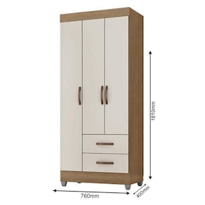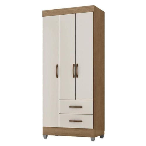 Guarda Roupa Solteiro Lite 3 Portas Nature Off White - Móveis Leão