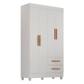 Guarda Roupa Solteiro Lite 4 Portas Branco Brilho - Móveis Leão