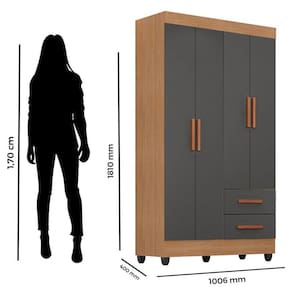 Guarda Roupa Solteiro Lite 4 Portas Nature Cinza Móveis Leão