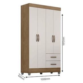 Guarda Roupa Solteiro Lite 4 Portas Nature Off White - Móveis Leão