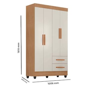 Guarda Roupa Solteiro Lite 4 Portas Nature Off White - Móveis Leão