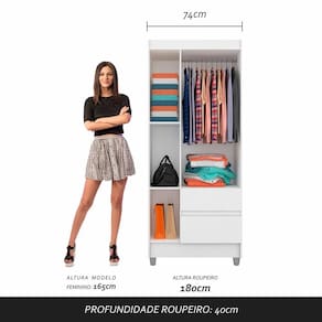 - Medidas do Guarda-Roupa Montado: A:180cm | L:74cm | P:40cm