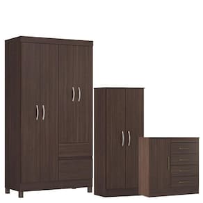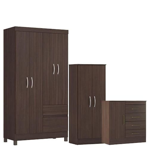 Guarda Roupa Solteiro Lótus com Multiuso Viena com Cômoda Montevidéu Café - Demóbile