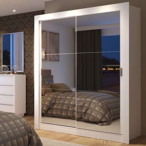 Guarda-Roupa Solteiro Madesa Dallas Plus 2 Portas de Correr de Espelho 4 Gavetas - Branco