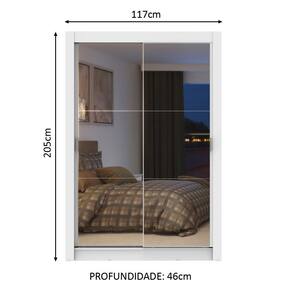Medidas totais do guarda-roupa: 205 cm de altura x 117 cm de largura x 46 cm de profundidade.