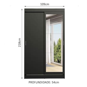 Medidas totais do guarda-roupa: 218 cm de altura x 109 cm de largura x 54 cm de profundidade.