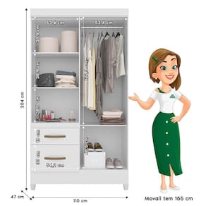 ESPECIFICAÇÕES: Estrutura em MDP Pintura UV 4 Portas Dobradiças metálicas Prateleira interna 2 Gavetas Corrediças metálicas Cabideiro Puxadores na cor bronze Pés em PVC